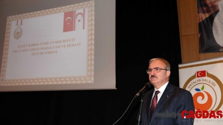 Vali Münir Karaloğlu, Kıbrıs gazileri onuruna düzenlenen Kuzey Kıbrıs Türkiye Cumhuriyeti Milli Mücadele Madalyası ve Beratı Tevcih Törenine katıldı. Törende Muratpaşa ilçesinde yaşayan 104 Kıbrıs gazisine madalya ve berat takdim edildi.