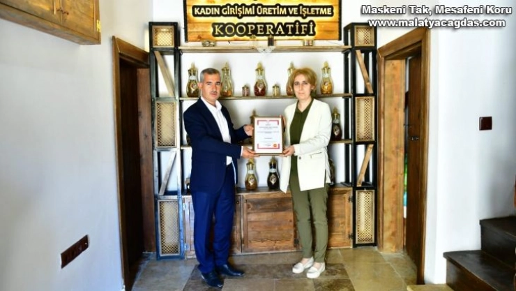 Malatya'nın Yeşilyurt ilçesinin meşhur tescilli yemeği kiraz yaprağı sarmasının coğrafi işaret tescil belgesi kadın kooperatifine teslim edildi.