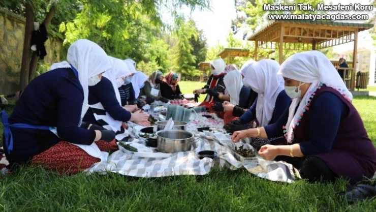 Malatya'da Battalgazi'nin Kalbi Kadın Kooperatifi'ndeki gönüllü üyeleri, kendi topladıkları kiraz yapraklarıyla padişah yemeği kiraz yaprağı sarması yaptı.
