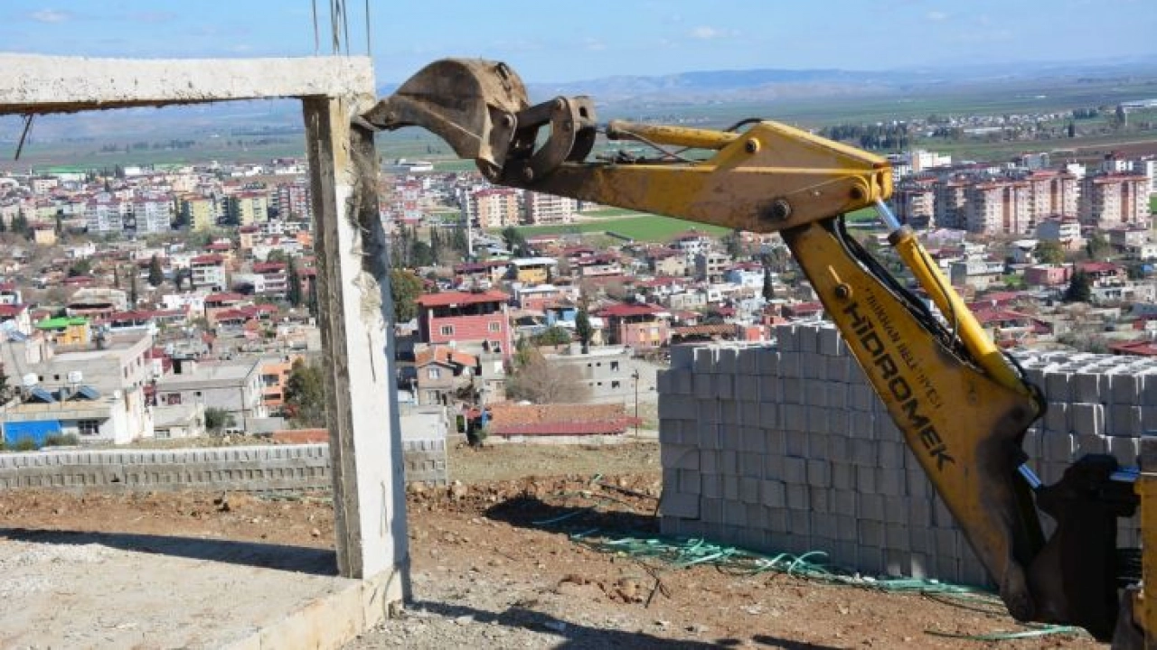 Hatay’ın Kırıkhan ilçesinde kaçak yapılar yıkıldı.
