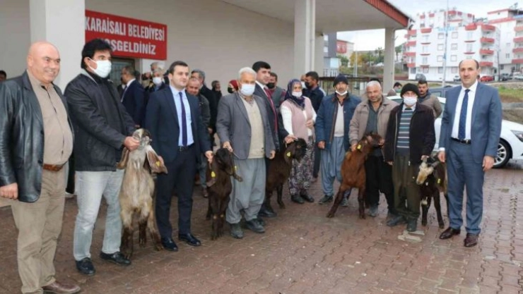 Karaisalı ilçesinin kırsal kesimlerinde yetiştiricilerin sahip olduğu süt verimi yönünden düşük kıl keçileri yerine süt verimi daha yüksek olan Kilis keçisinin popülasyonunu, birim hayvandan elde edilen keçi sütü miktarını artırmayı amaçlayan proje kapsamında 15 mahallede faaliyet gösteren 30 keçi yetiştiricisine 1’er adet Halep Melezi Teke, Karaisalı Kaymakamı Mert Kumcu, Adana İl Tarım ve Orman Müdürü Muhammet Ali Tekin, Karaisalı Belediye Başkanı Sadettin Aslan tarafından verildi.