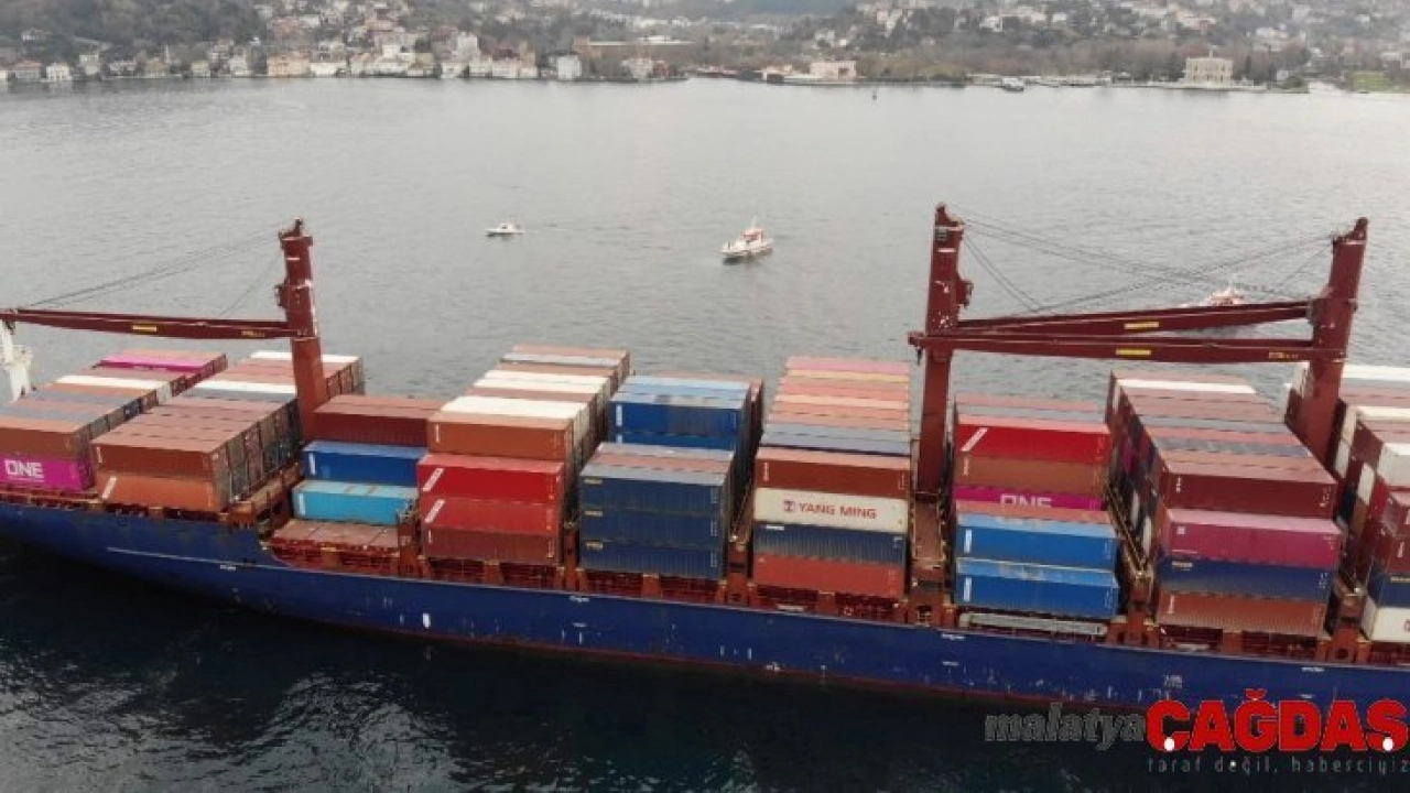 İstanbul Boğazı’nda Rumeli Hisarı açıklarında kıyıya çarpan yük gemisi havadan görüntülendi.
