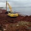 Caddebostan sahilinde, son günlerde yaşanan şiddetli lodos nedeniyle kırmızı renkli yosunların sahil kesiminde birikip kayalıkların üzerini kapladığı görülmüştü. Bugün İstanbul Büyükşehir Belediyesi ekipleri tarafından sahilde temizleme çalışmaları başladı. İş makinesiyle kayalıklardan toplanan yosunlar kamyon kasasına yüklendi.
