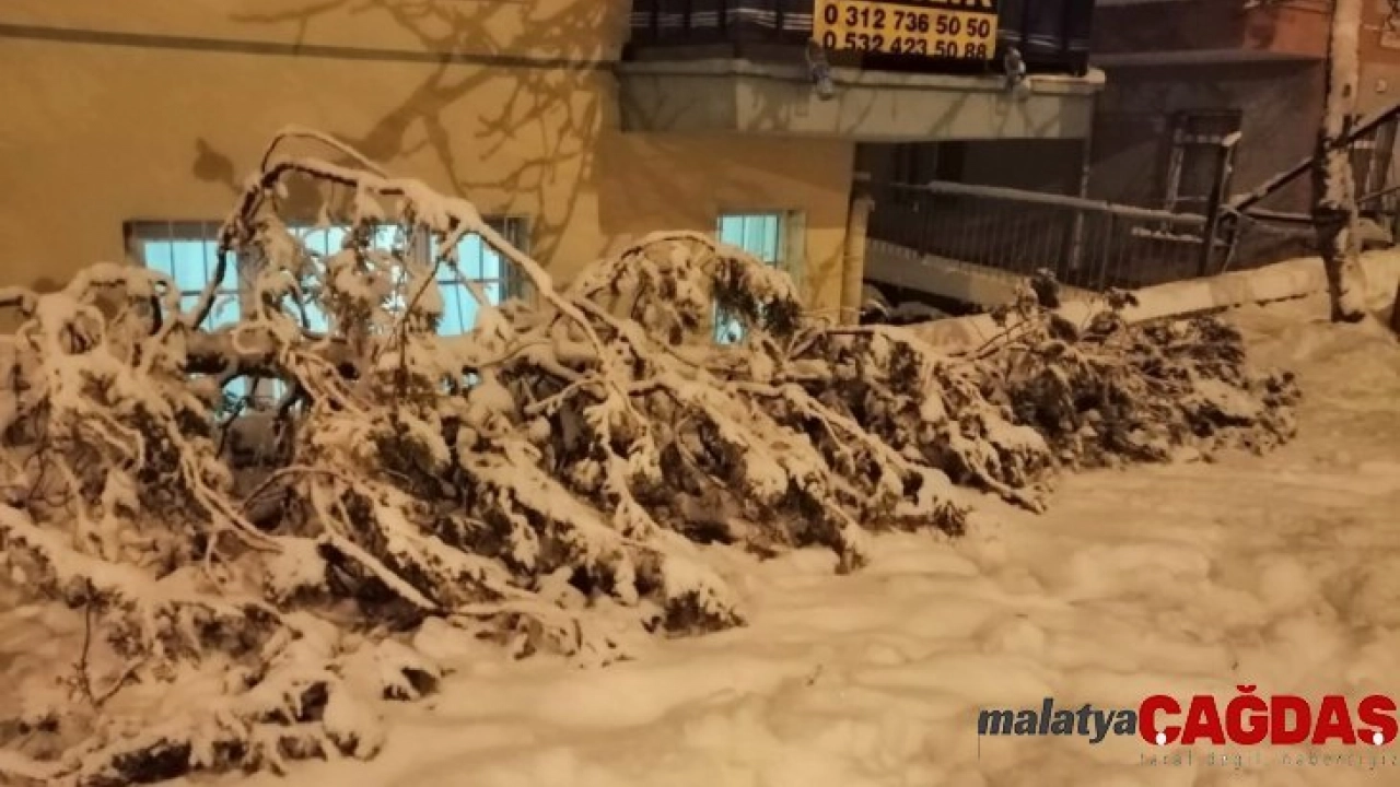 Ankara’nın Kızılcahamam ilçesinde yoğun kar yağışı nedeniyle ağaçlar kırıldı.