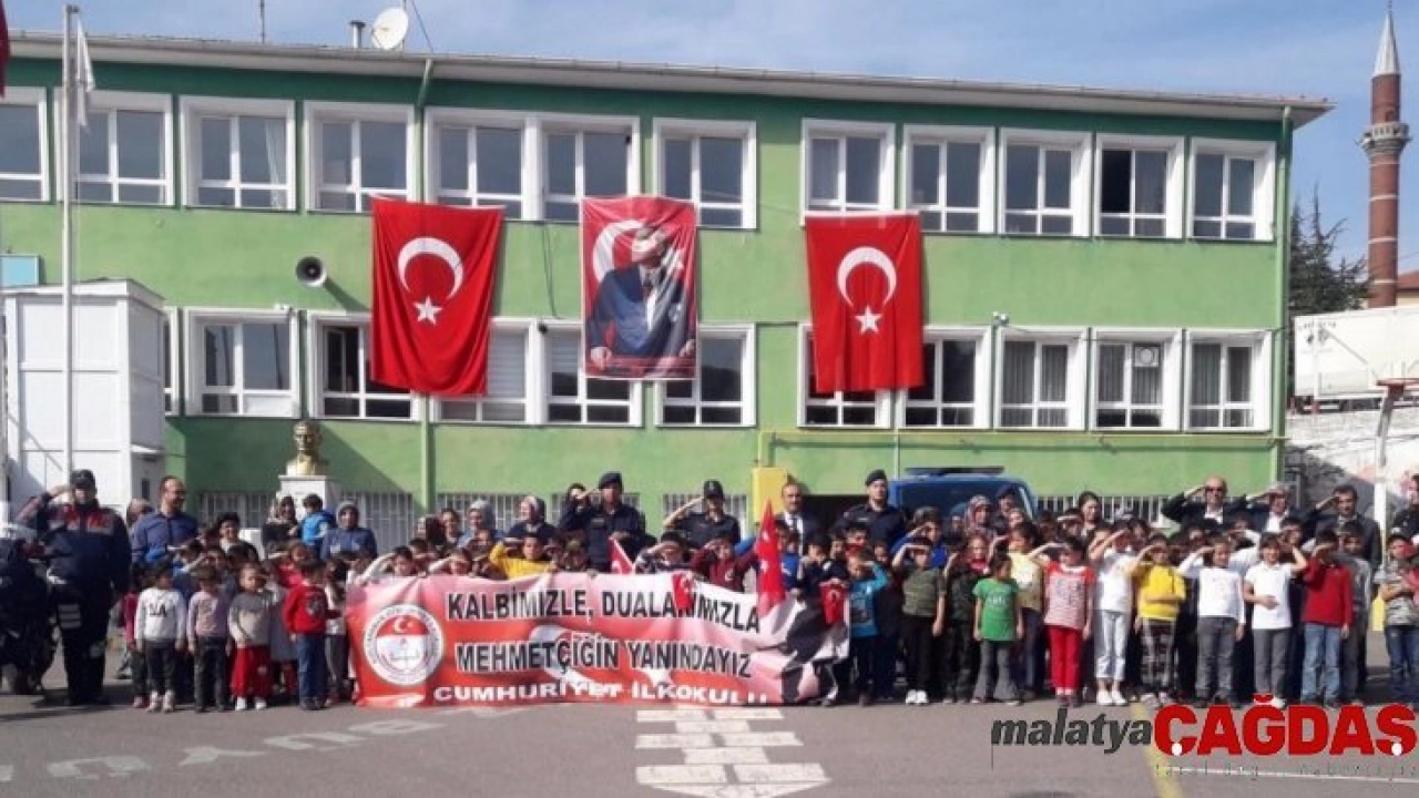 Kızılcahamam Cumhuriyet İlkokulu öğretmen, öğrenci ve velileri, Barış Pınarı Harekatı’na destek için etkinlik düzenledi. Atatürk posteri, bayraklar ve pankartlar asılan okul, Mehmetçiğe desteğini gösterdi. Kızılcahamam İlçe Jandarma Komutanı Teğmen Saygın Yılmaz Şentürk de etkinlik nedeniyle okulu ziyaret ederek teşekkür etti. İlçe Jandarma Komutanı Şentürk’e sundukları çiçekle tüm Mehmetçiğe şükranlarını dile getiren öğrenciler, jandarma motosiklet ve ekip aracına binerek fotoğraf da çekindiler.
