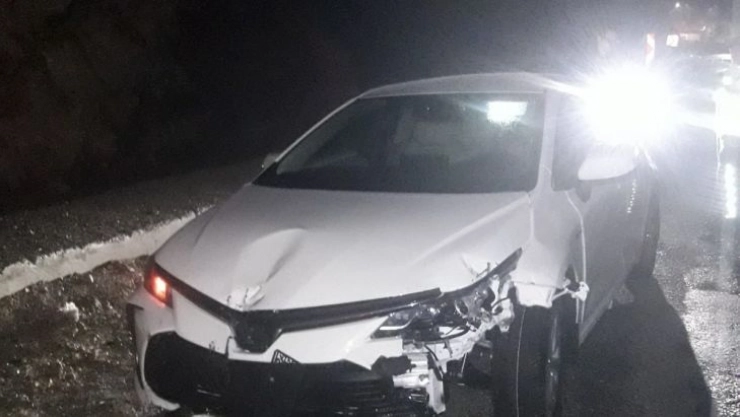 Adıyaman-Malatya karayolunda sürücüsünün direksiyon hakimiyetini kaybettiği otomobil bariyerlere çarparak durabildi.
