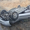 Uşak’ta sürücüsünün direksiyon hakimiyetini kaybetmesi sonucu bir otomobil şarampole yuvarlanarak ters döndü, sürücü hafif yaralandı.