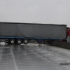 Manisa'nın Kula ilçesinde seyir halinde olan bir tır, yağışlı havanın etkisiyle sürücüsünün direksiyon hakimiyetini kaybetmesi sonucu refüjle bariyerler arasında sıkıştı.