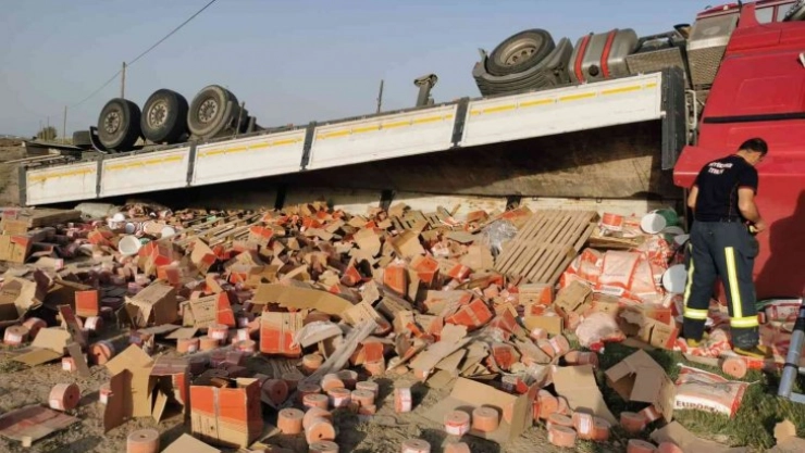 Kontrolden çıkan tır devrildi: 1 yaralı