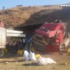 Bingöl'de kontrolden çıkan tır devrildi, yemler etrafa savruldu. Sürücü yara almadan kazayı atlattı.