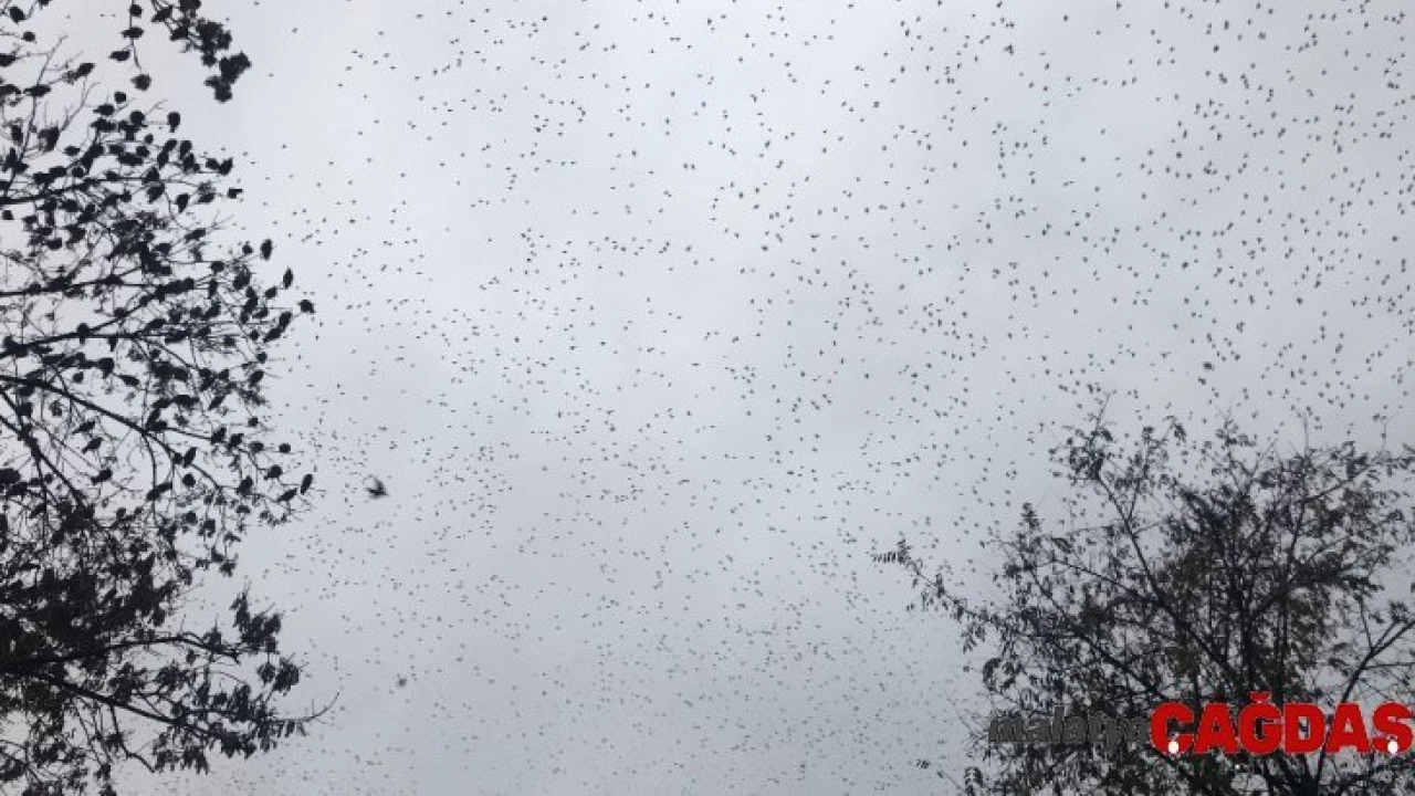 Konya'da sığırcık kuşlarının gökyüzündeki dansı mest etti