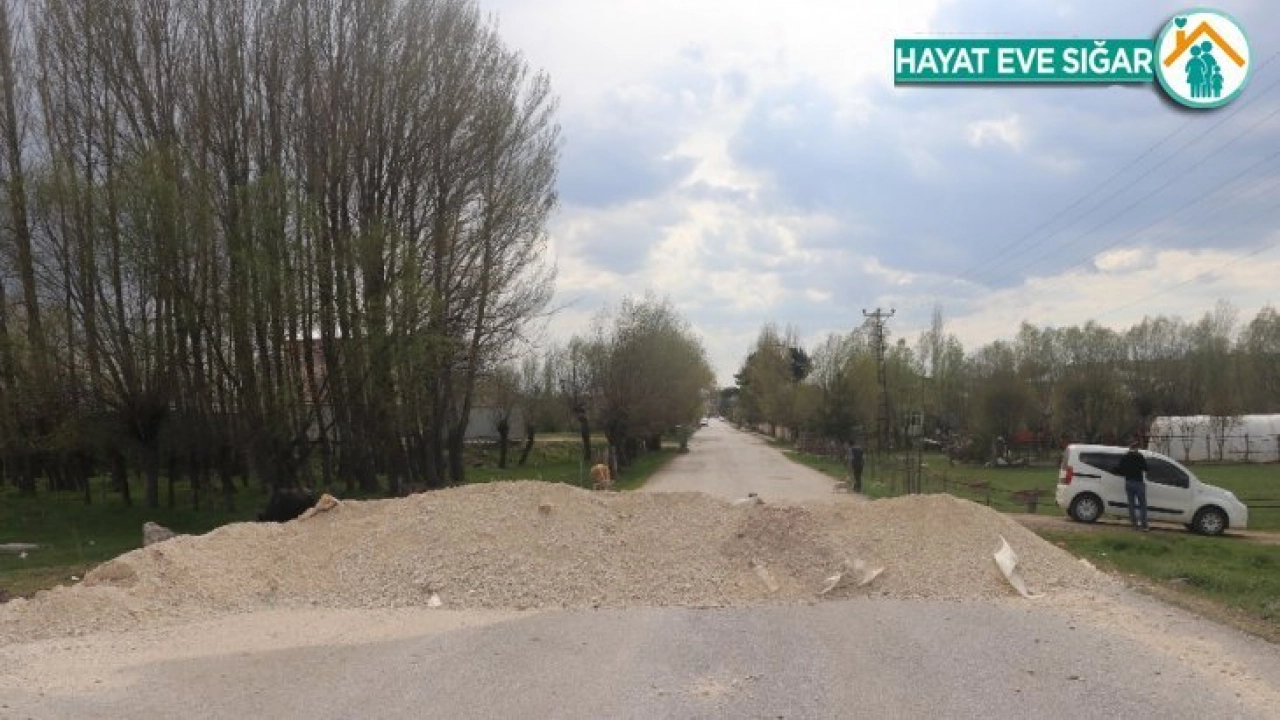 Sivas'ın Hafik İlçesinde korona virüs (Covid-19) tedbirleri kapsamında ilçe girişi Erzincan istikametinden gelen yola hafriyat dökülerek trafiğe katıldı.