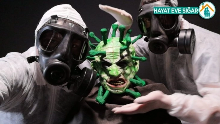 Korona virüs (Covid-19) salgını hakkında sosyal medya üzerinden vatandaşları bilgilendirmek için paylaşımlar yapan Halit Karadağ, Gürkan Yadigar, Taner Taşmurat ve Orhan Kahraman bu kez sokaklara çıktı. Gençler, virüsün mikroskop altındaki görüntüsünden etkilenerek yaptıkları maskeyle salgına dikkat çekti. Dörtlü, virüse karşı gerekli önlemleri almayan vatandaşlara Sağlık Bakanlığı tarafından yapılan uyarıları hatırlatarak vatandaşlarla sohbet etti. Renkli görüntülerin ortaya çıktığı farkındalık etkinliği vatandaşlardan da yoğun ilgi gördü.