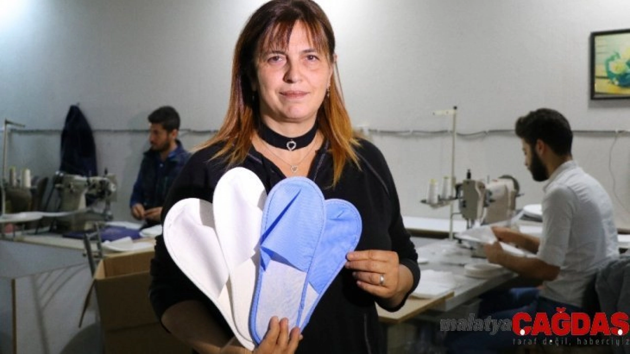 Adana'da KOSGEB'den aldığı hibe ile terlik üretim atölyesi kuran Necla Yergök, günlük 7 bin adet tek kullanımlık terlik üreterek otel ve hastanelere satışını yapıyor. Aylık 150 bin tek kullanımlık terlik üreten Yergök, 13 kişiye istihdam sağlıyorum. Hedefimiz yurt dışına açılmak' dedi.