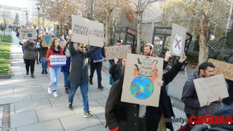 Kosova'da halk, iklim değişikliğine dikkat çekmek için başkent Priştine'de protesto yürüyüşü düzenledi.