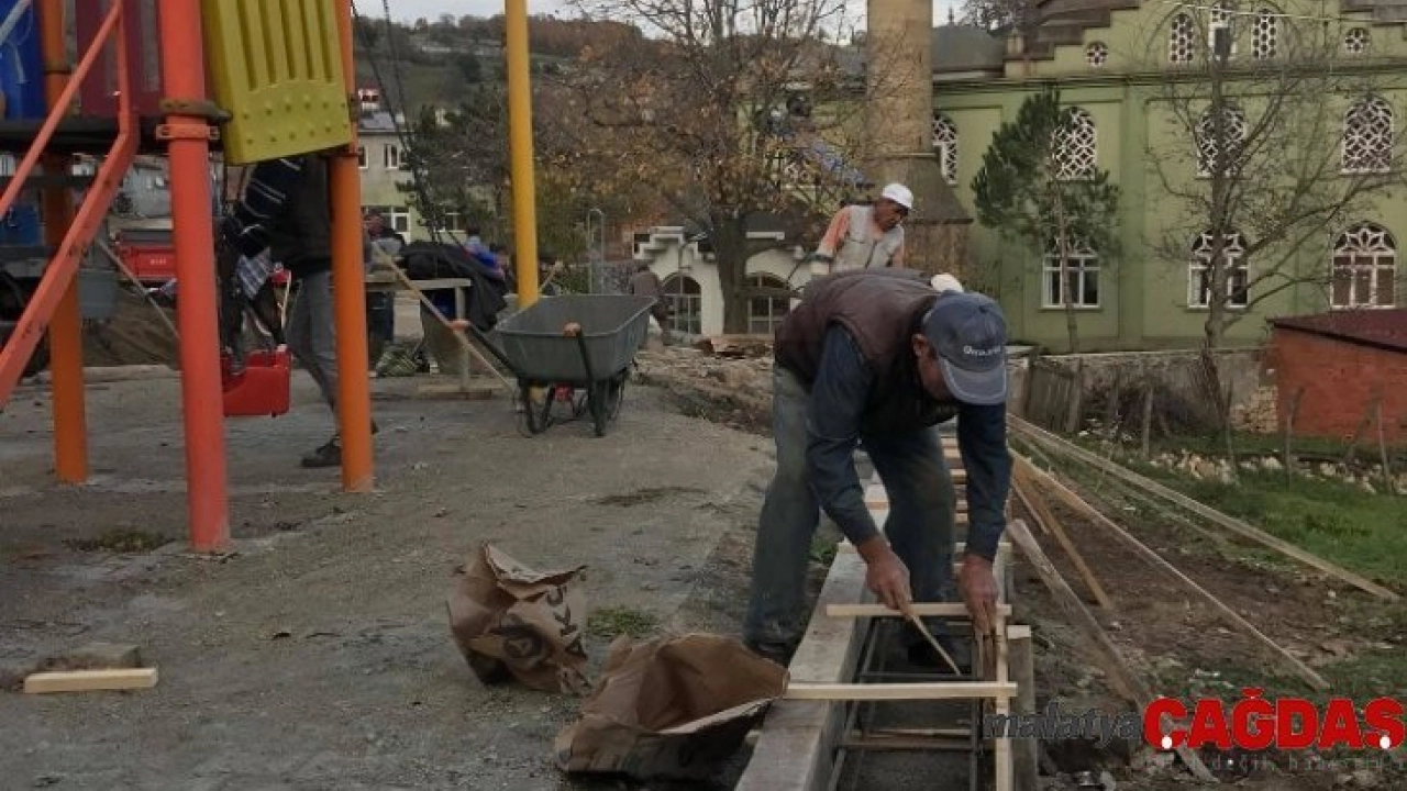 Köy halkı, meydan istinat duvarını el birliği ile yaptı