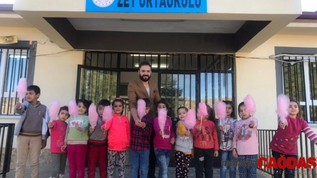 Köy okulu öğrencilerine pamuk şeker sürprizi