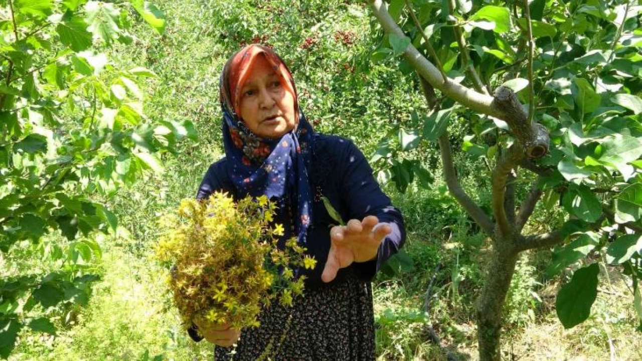 Sarı Kantaron çiçeğinin, yağının, tohumunun ve bitkisinden çay elde ettiklerini aktaran Atike Ersin Solmuşgül, “Bizim için bu yarım doktor. Çiçek dönemlerinde hasadını yapıyoruz. Cam şişelerde çiçekleri zeytinyağı ile birlikte 1 ay boyunca tarlada güneşte bekletiyoruz. Kırmızı rengi alana kadar iyice güneşte bekliyor. Mide ağrısı, eklem ağrıları, yaralarda, kesiklerde enfeksiyonda her derde deva bizim için. Yağını ya da çayını mide ağrısında kullanıyoruz. Bizim için köyde bunun adı yarım doktor. Her derde deva. Köyümüzde dağ eteklerinde doğa da kendinden çıkar her yaz çiçek dönemi toplarız. Bizim için şifa deposu” diye konuştu.