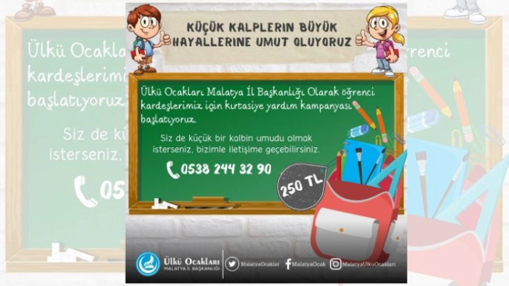 Ülkü Ocakları Malatya İl Başkanlığı öğrenci kardeşlerimiz için kırtasiye yardım kampanyası başlattı.