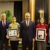 İtalya'da düzenlenen Uluslararası Karikatür Yarışmasında ilk iki sırayı paylaşan Gemlikli küçük karikatüristler, Bursa Büyükşehir Belediye Başkanı Alinur Aktaş'ı ziyaret etti.