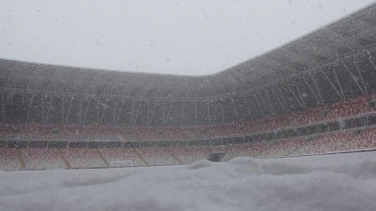 Ziraat Türkiye Kupası Çeyrek Final rövanş maçında Sivasspor ile Antalyaspor arasında Sivas 4 Eylül Stadyumu’nda oynanacak maç öncesi stadyum zemini karla kaplandı.