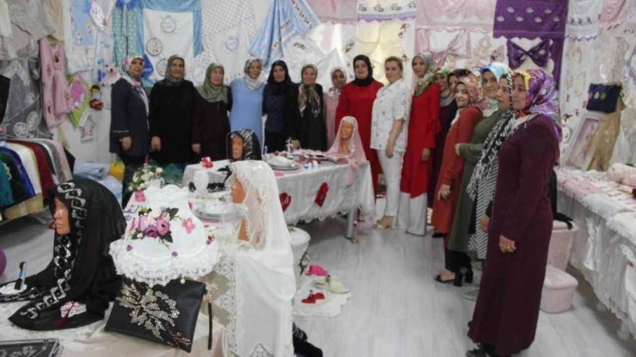 İŞ-KUR Bünyesinde Battalgazi Halk Eğitim Merkezi’nde eğitim alan kursiyerlerin el emeği göz nuru eserler Niyazi Mahallesi’ndeki muhtar evinde görücüye çıktı.