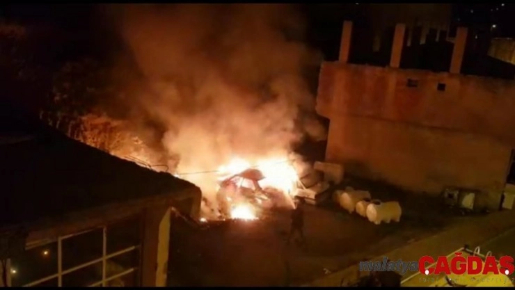 Gümüşhane'nin Kürtün ilçe merkezinde park halindeki 2 hurda araç gece yarısı yandı.