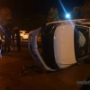 Aydın’ın Kuşadası ilçesinde,yağmurdan dolayı kayganlaşan yolda direksiyon hakimiyetini kaybeden araç ters döndü.