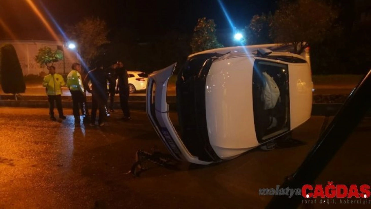 Kuşadası'nda yağmurdan dolayı kayganlaşan yolda araç ters döndü