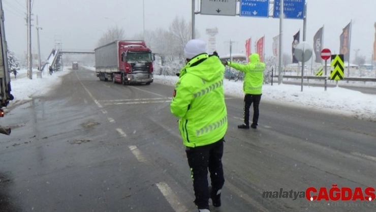 Kütahya'da yoğun kar yağışı sebebiyle çevre yollarda büyük araçların geçişine izin verilmiyor.
