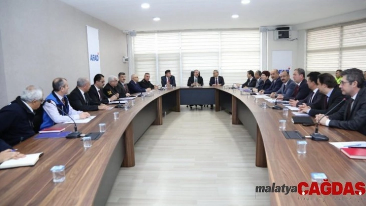 İl Afet ve Acil Durum Müdürü Ahmet Ali Artun’un sunumuyla gerçekleşen toplantıda vatandaşların uyarılması ve bilgilendirilmesi, yolda mahsur kalanlara yardım, evsiz ve kimsesizlerin barınması, riskli bölgelerin belirlenmesi, bekleme noktalarının belirlenmesi, kurumların koordinasyonu, meteorolojik haberlerin iletilmesi, genel hayatı olumsuz etkileyebilecek risklerin azaltılması için kurumların tam bir koordinasyon içerisinde hareket etmesi ve sağlık tedbirleri gibi konular görüşüldü.