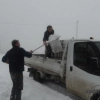 Yolda kalan araçlara, Karayolları ekipleri ve vatandaşların yardımı ile çekiliyor.