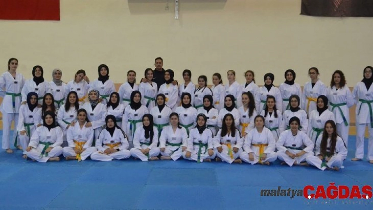 KYK'lı kız öğrenciler tekvando kuşak sınavında ter döktü