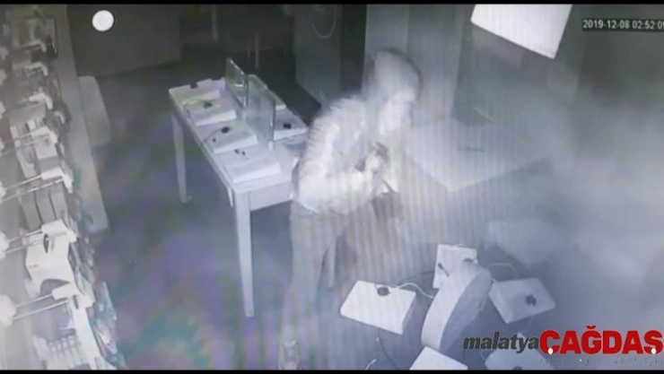 Kahramanmaraş'ta sırt çantasında taşıdığı levyeyle iletişim dükkanlarını hedef alan bir kişi, bekçi tarafından yakalandı. Hırsızlık anı iş yeri kamerasınca görüntülendi.