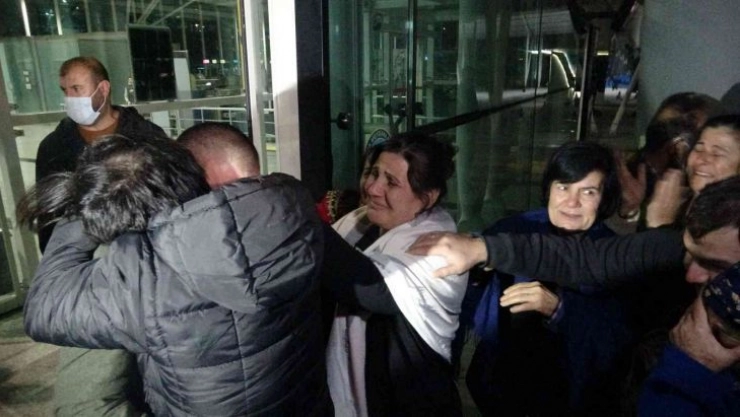 Hatay Havaalanında Hidayet Yaprak ailesi tarafından büyük bir sevinç ve heyecanla karşılanırken yakınları zılgıt çekip gözyaşı döktü.