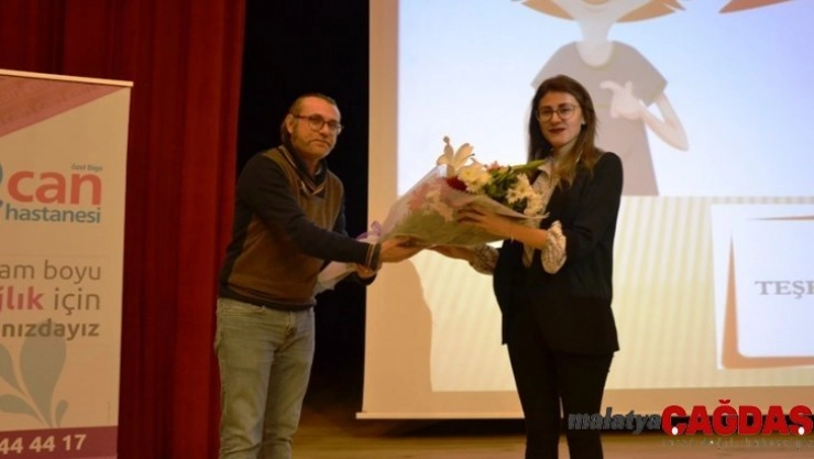 Öğrencilerden gelen soruları cevaplandıran Diyetisyen Merve Barboroz’a Okul Müdür Yardımcısı Habip Aydın Oksay tarafından çiçek takdim edildi.