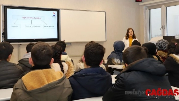 Rehberlik Birimi Öğretmeni Fatma Nur İspenoğlu ile birlikte SANKO Üniversitesi’ne gelen öğrencilere, Sağlık Bilimleri Fakültesi Hemşirelik Bölümü Halk Sağlığı Hemşireliğinden Öğr. Gör. Emine Baş, Fizyoterapi ve Rehabilitasyon Bölümünden Öğr. Gör. Hatice Adıgüzel ve Beslenme ve Diyetetik Bölümünden Diyetisyen Seren Kurtgil, üniversite, bölümler, eğitim ve uygulamalar hakkında bilgi verdi.