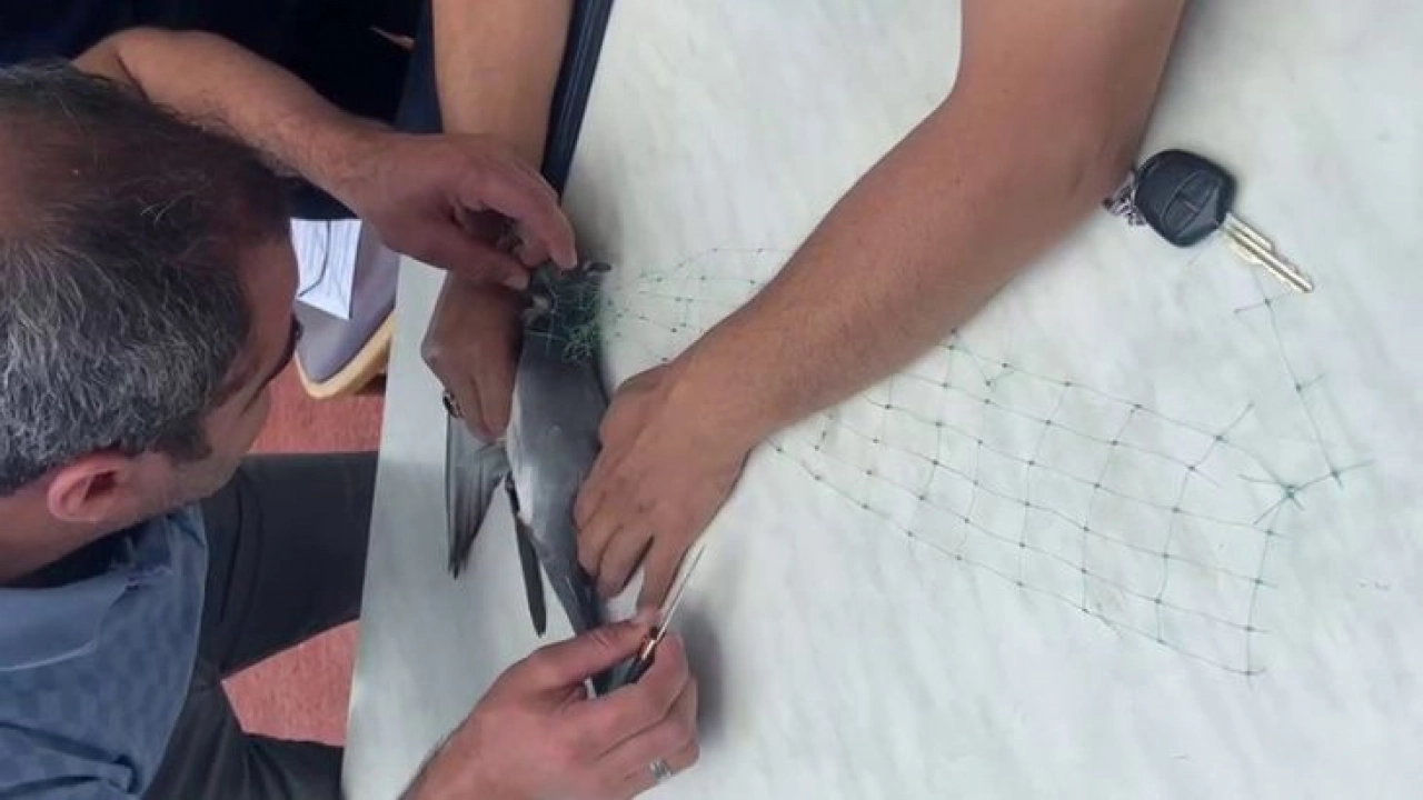 Erzurum Kazım Karabekir Stadyumu'nda denetim yapan Çevre, Şehircilik ve İklim Değişikliği İl Müdürlüğü teknik ekibi, boynuna tel dolanan güvercini uzun uğraşlar sonucu kurtardı.