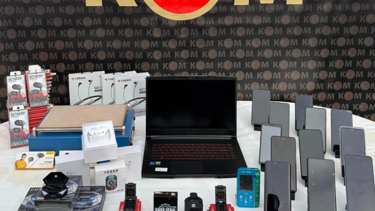 Bu kapsamda ekipler, M.H. ve B.B. isimli şahsa ait olan iş yerlerinde ve araçlarında yaptıkları aramada; 12 gümrük kaçağı akıllı cep telefonu, 81 kg gümrük kaçağı nargile tütünü, bir BOX (IMEI numarası değiştirme cihazı), 2 direnç değiştirme cihazı, bir gümrük kaçağı akıllı cep telefonu arıza tespit cihazı, bir IMEI değiştirmede kullanılan dizüstü bilgisayar, 11 gümrük kaçağı kablosuz kulaklık, 33 gümrük kaçağı kablolu kulaklık, bir gümrük kaçağı telefon soğutucu cihaz ve bir gümrük kaçağı vakum cihazı ele geçirildi.
