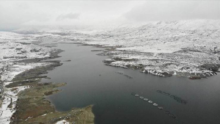 Malatya'da karla kaplanan Sürgü Barajı dronla görüntülendi