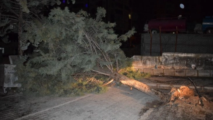 Malatya’da etkili olan şiddetli fırtına ağacı kökünden söktü.