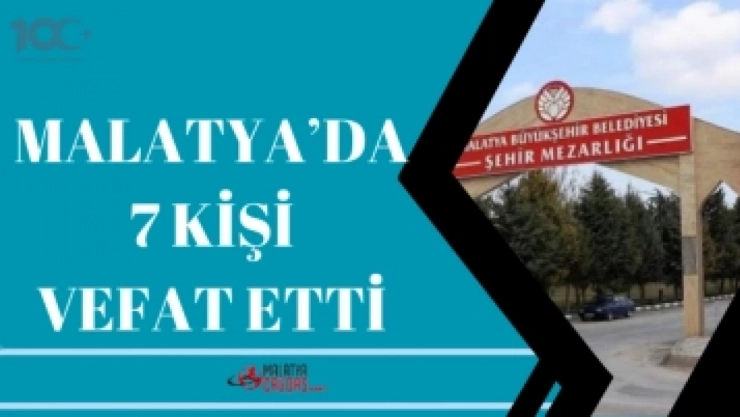 Malatya Büyükşehir Belediyesi Mezarlık Müdürlüğünden Alınan Bilgiye Göre Malatya'da Bugün 7 Kişi Vefat Etti.