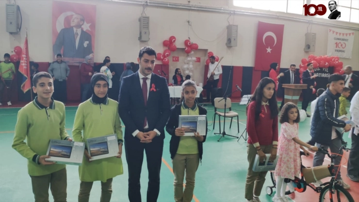 Öğrencilerin şiirler okuduğu, halk oyunları gösterisi sunduğu törende, yapılan çeşitli yarışmalarda derece elde eden öğrencilere hediyelerin verilmesinden sonra geçit töreni ile etkinlikler son buldu.
