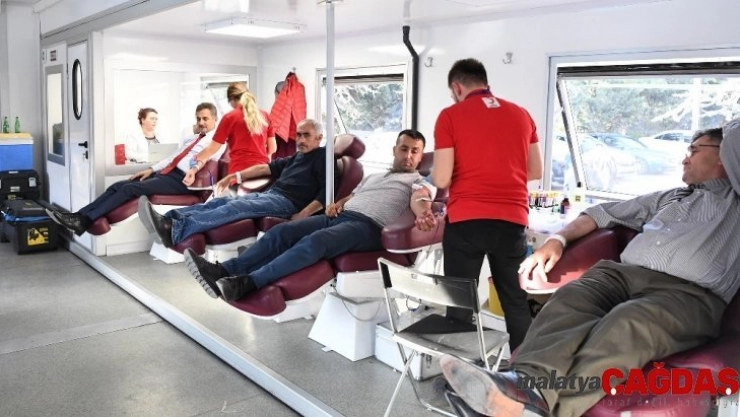 Mamak Belediye Başkanı Murat Köse, başkanlık binası önünde hazır bekleyen Türk Kızılayı tırında Mehmetçik için kan bağışında bulundu.