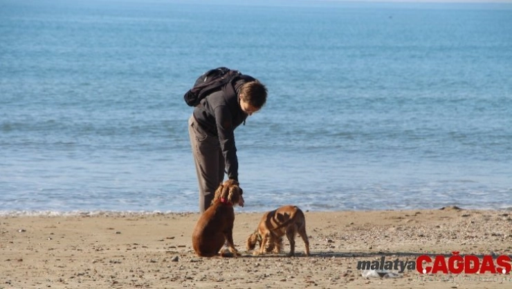 Güneşli havayı fırsat bilen yerli halk ve bazı turistlerde sahilde yürüyüş yaparken, köpekleriyle oynamayı ihmal etmediler.