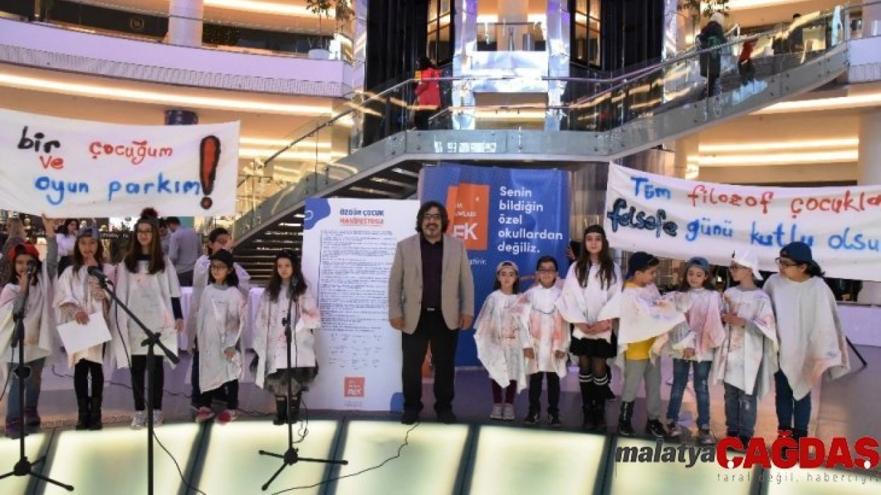 20 Kasım ‘Dünya Çocuk Hakları Günü’ ve ‘Dünya Felsefe Günü’ dolayısıyla ‘özgür çocuk manifestosu’ isimli program bir alışveriş merkezinde gerçekleştirildi. Etkinlikte mikrofonlardan çocuk haklarını çiğnendiğini vurgulayan ve bu hakların var olmasını isteyen günün kahramanları çocuklar, ardından fikirlerini kağıtlara yazıp uçak yaptı. Daha sonra bu uçakları insanların okumasını isteyen çocuklar, AVM’nin 2 katından hep birlikte bunları insanların üzerine doğru attı.