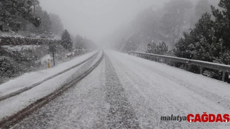 Manisa'nın Demirci ilçesinin yüksek kesimleri mevsimin ilk kar yağışıyla beyaza büründü.