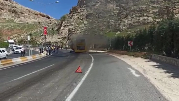 Mardin'in Artuklu ilçesi İstasyon Mahallesi'nde içinde 25 yolcusu bulunan halk otobüsü alev alarak yandı. Yolcular, şoför tarafından tahliye edilirken araç kullanılamaz hale geldi.