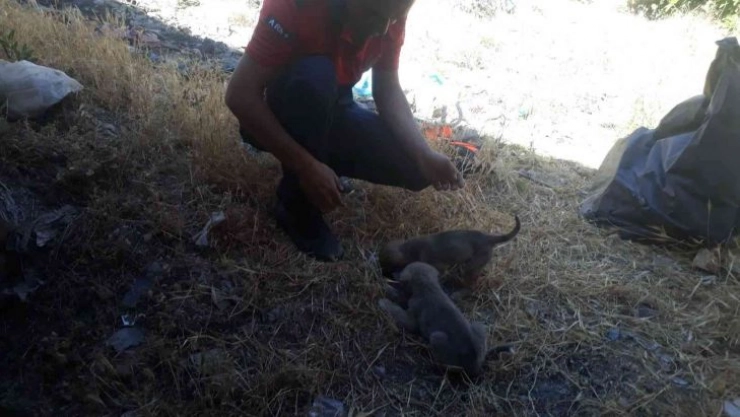 Mardin'de kuyuya düşen yavru köpekler itfaiye ekipleri tarafından kurtarıldı