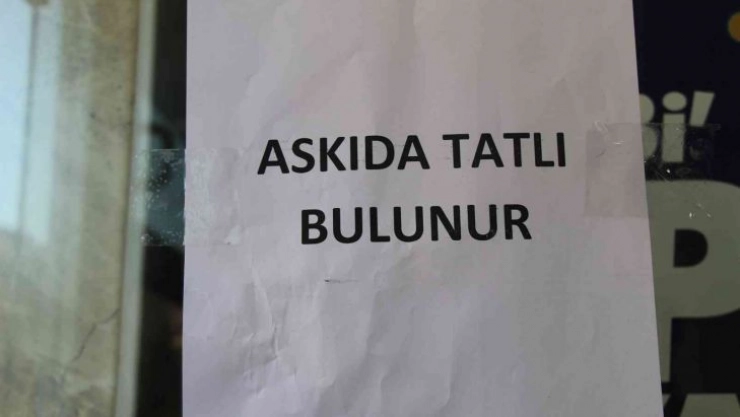35 yıldır baba mesleği olan tatlıcılık yaptıklarını söyleyen Fırat Alan, “Her yıl olduğu gibi bu yılda askıda ekmek değil de, askıda tatlı uygulaması yapıyoruz. Hayırsever vatandaşlarımızı her sene olduğu gibi bekliyoruz. Günlük 30-40 kiloya yakın askıda tatlı bırakılıyor. Bizlerde bunu ihtiyacı olan insanlara, kurumlara ve derneklere veriyoruz. Bu konuda çok güzel bir destek alıyoruz. Hayırsever müşterilerimiz çok var. Gelip ücretini verenler oluyor” dedi.